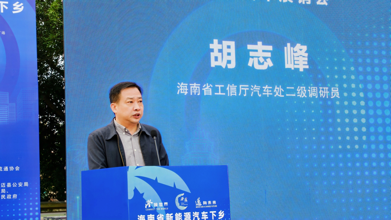 胡志峰在致辞中指出,海南作为全国首个新能源汽车推广省级试点,始终以“双碳”目标为引领,持续优化政策体系、完善充电基础设施。他表示,省工信厅将持续推动新能源汽车下乡,助力海南建设国家生态文明试验区。