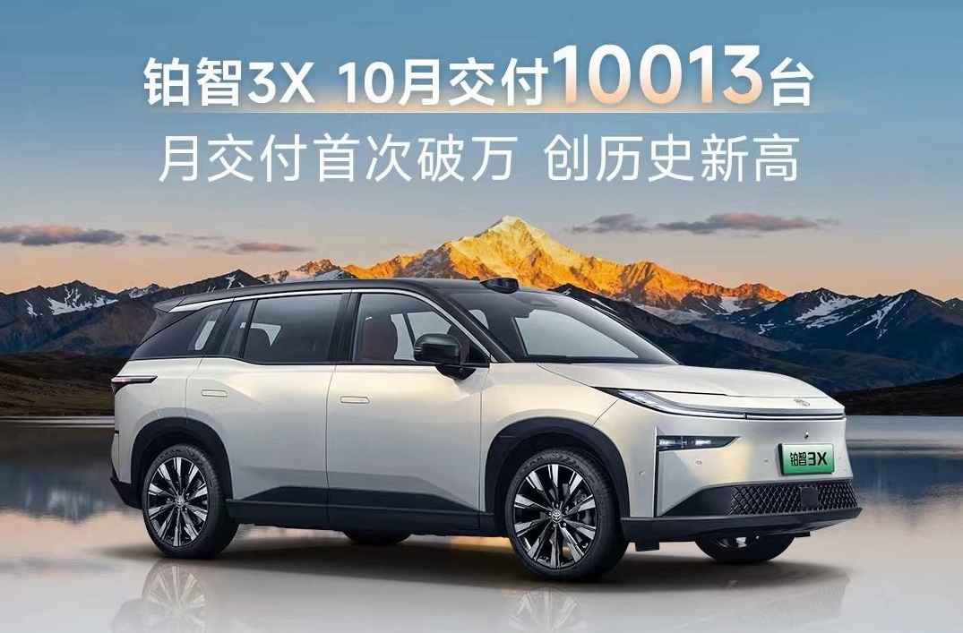 2025年广汽丰田凭借新能源车型实现逆势正增长,1-10月累计销量63.9万辆,实现同比正增长。前三季度新能源车型累计销量12.3万台,同比暴涨280%,纯电车型铂智3X成为销量增长关键,从3月上市后销量便持续攀升,10月交付量首次破万,上市至10月累计交付约5.2万辆。