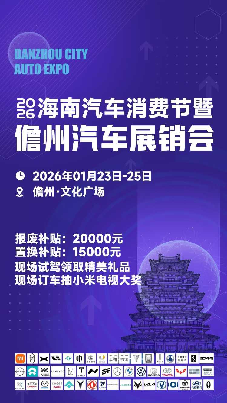 30个品牌齐聚!第三届儋州汽车展销会1月23日开幕 解锁购车多重福利