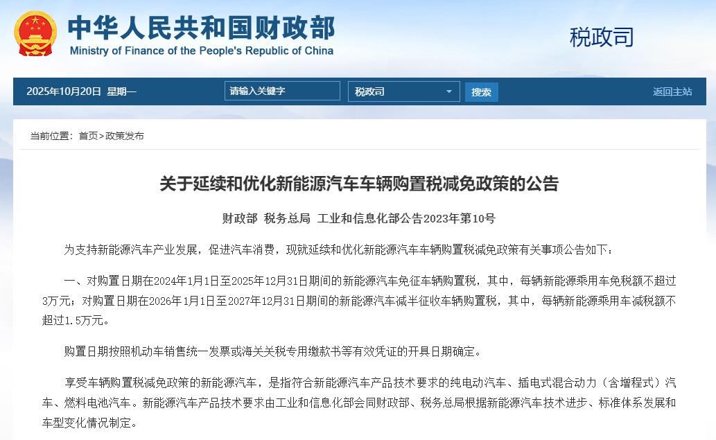 2025年是中国对新能源汽车免征车辆购置税的最后一年,明年起将恢复征税。